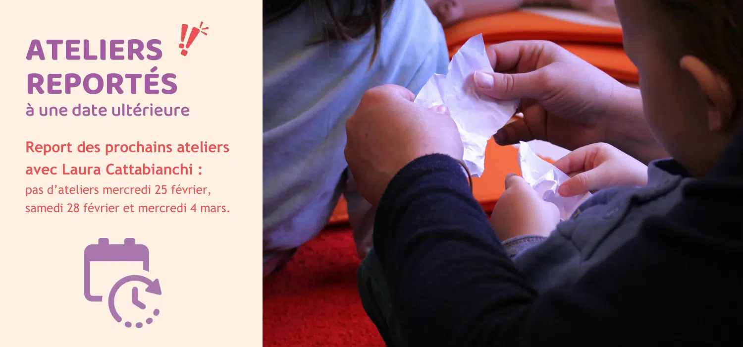 Laura Cattabianchi propose une plongée dans les sons des papiers et leur pouvoir évocateur. Chaque froissement devient une histoire, chaque souffle un paysage sonore. Les tout-petits se familiarisent avec différents papiers et les gestes pour les manipuler. Des ateliers qui éveillent à la fois l’oreille, le geste et l’imaginaire.